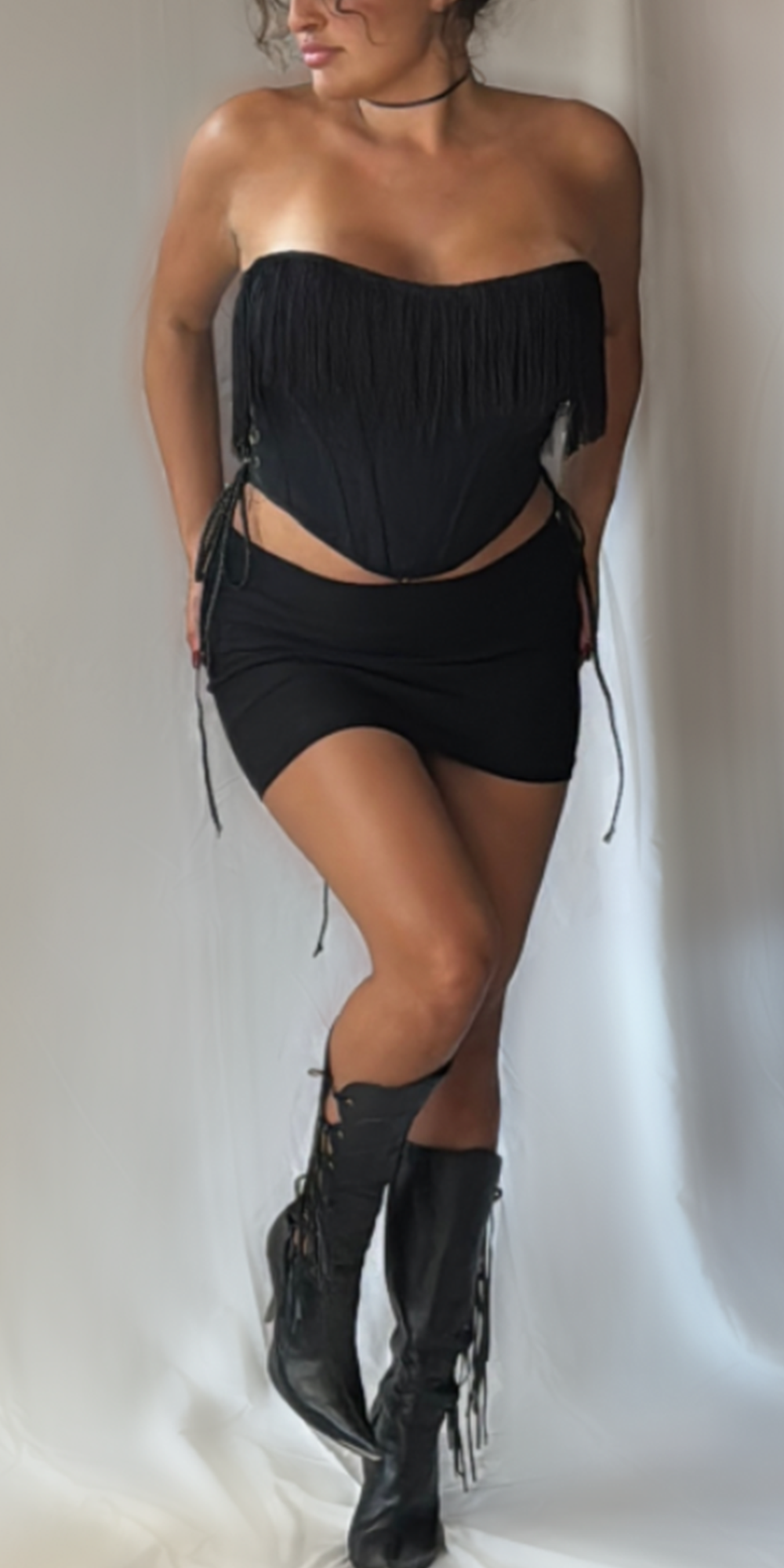 All garments were designed, patterned and sewn by me. Disco Fairy Photos Process Chiffon Duster Photos Process 20’s Slip Dress Photos Process Process Knit Set Photos Process Silk Corset Photos Process Fringe Corset Photos
